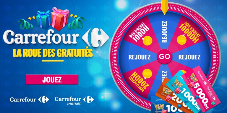 Participez à la Roue des gratuités de Carrefour et tentez de gagner des bons d’achat https://www.jeu-carrefour.ma/