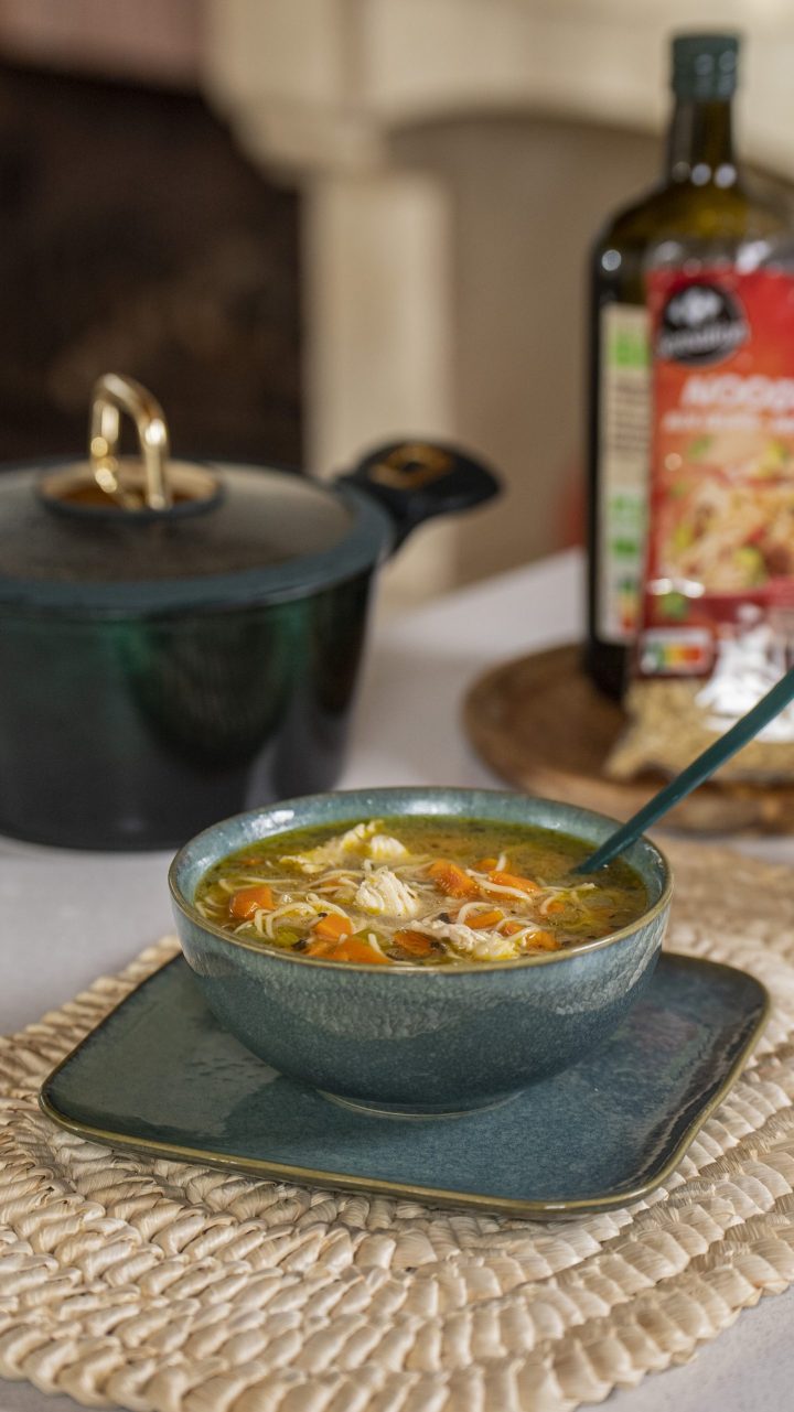 Soupe de légumes au poulet pour Ramadan Ingrédients 1/4 poulet 2 feuilles de laurier 3 carottes, coupées en petits cubes 4 branches de céleri 2 gousses d’ail 1 cuillère à café de gingembre 1 petit oignon coupé en petits cubes 1 cuillère à soupe de persil 1/2 cuillère à café de thym séché Nouilles Carrefour…